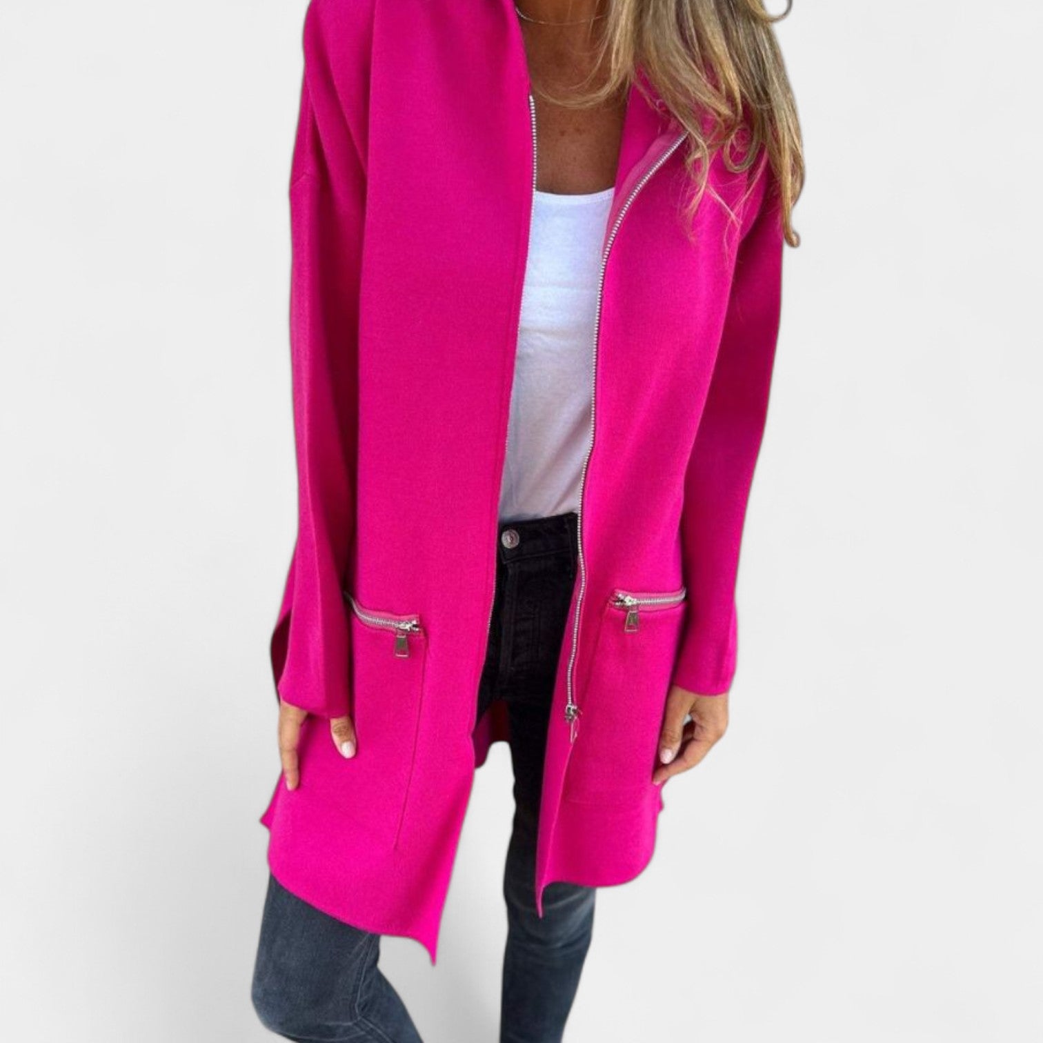 Mikinová bunda Tereza spojuje sportovní šmrnc s jednoduchou elegancí. Díky rovnému střihu, měkkému materiálu a praktickému zipu se stane vaším ideálním společníkem pro volný čas i každodenní nošení. Dostupná v několika barvách, snadno se přizpůsobí vašemu stylu a šatníku.