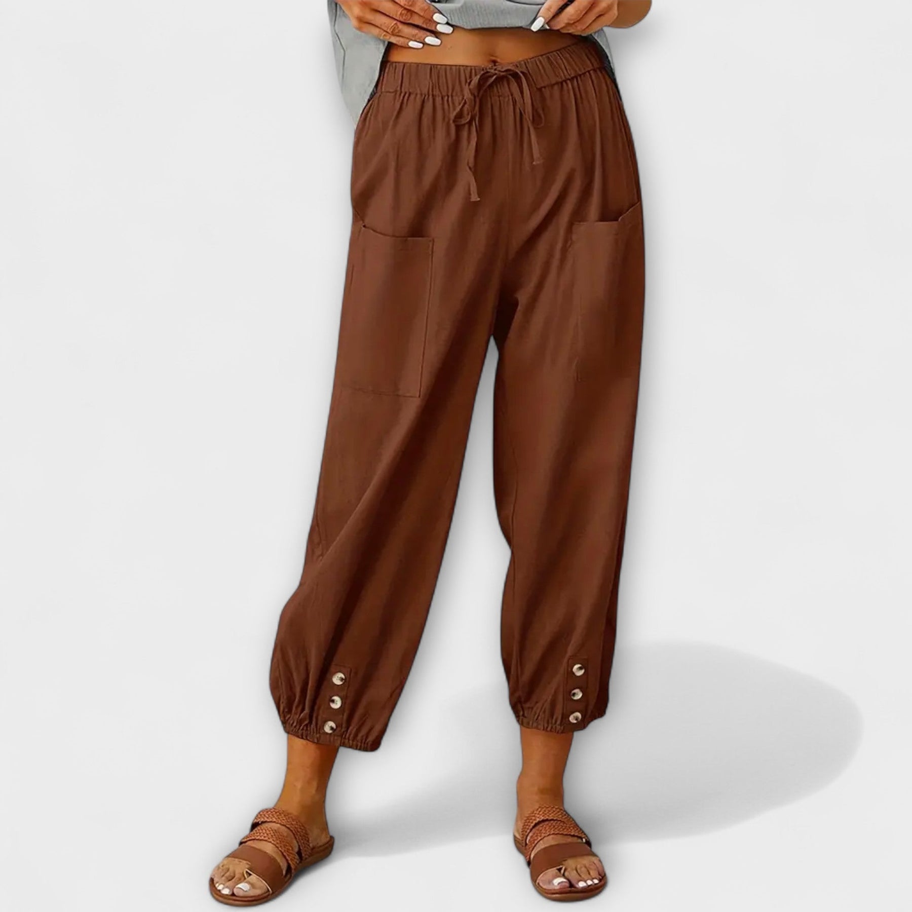 Objevte své nové oblíbené kalhoty na nejteplejší měsíce: haremové kalhoty Kiara! Tyto kalhoty spojují styl a pohodlí a stanou se vaším dokonalým společníkem pro ležérní, módní outfity na jaře.