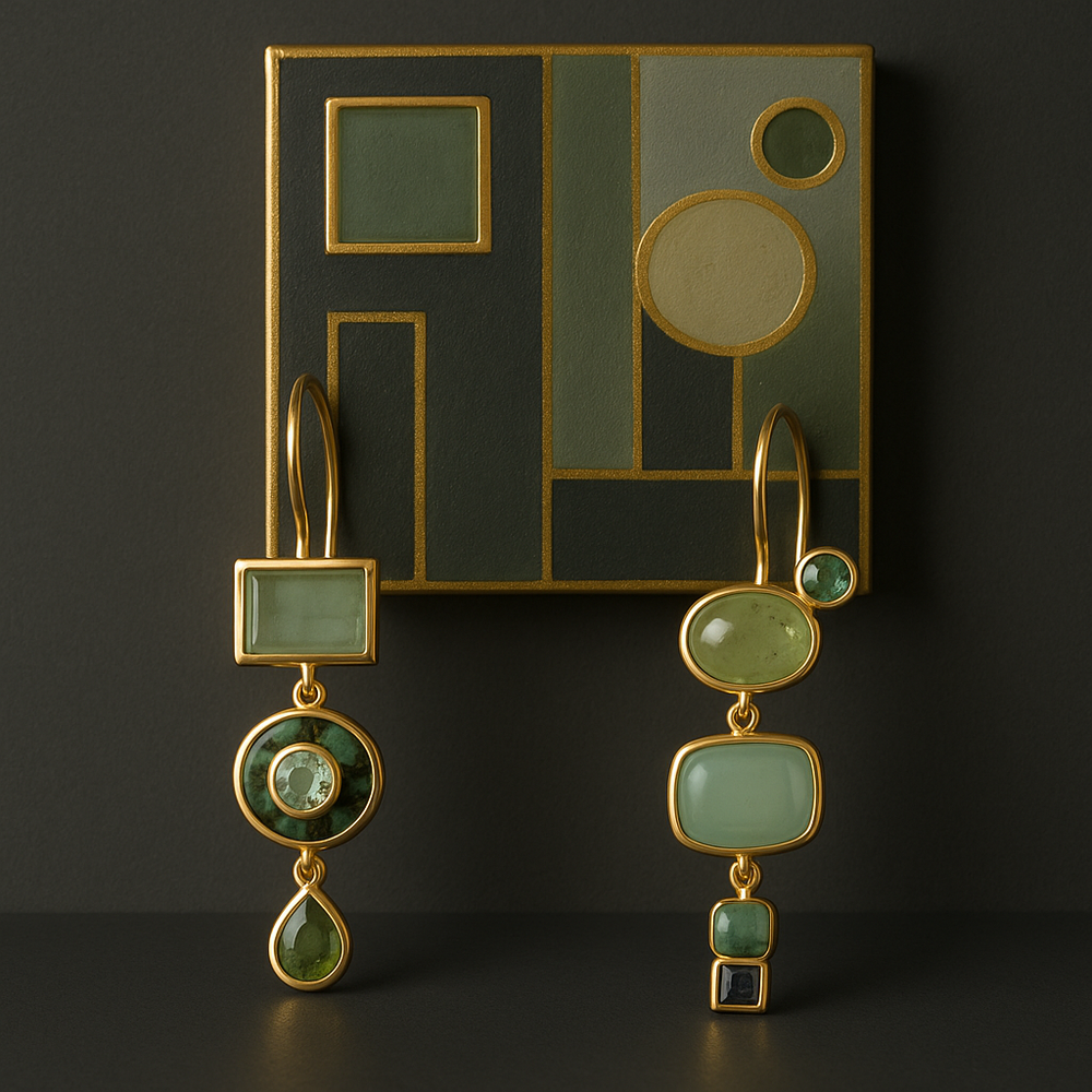 Tris di Onde – Pozlacený mosazný prsten s barevnými zirkony